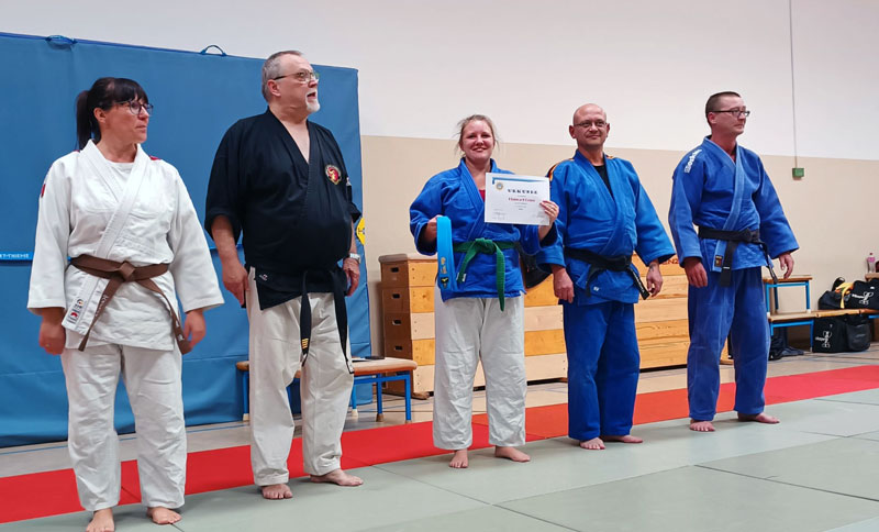 Am Montag den 27.10.25 wurde nach intensiver Vorbereitung ein doch seltener und anspruchsvoller Kyu-Grad geprüft. Dieser Prüfung stellte sich unsere Bianca Körner, die gut vorbereitet vor den Augen unseres Prüfers Ronny Schmieder und den anwesenden Kindern ihr Können demonstrierte. In der Halle war es so still, wie sonst nur am Wochenende. Gespannt haben alle die Ausführungen der Techniken verfolgt die Bianca demonstriert hat. Für alle war es ein Augenschmaus und hochinteressant was Judo in dieser Lernphase an Perfektion bieten kann. Bianca konnte bei allen abverlangten Aufgaben mit hervorragendem Ergebnis überzeugen und hat die Augen aller zum leuchten gebracht. Ihre Ausführungen gaben kaum Anlass zur Kritik. Es war eine Prüfung die in Demonstration und Dynamik sowie im theoretischen Komplex den hohen Wissensstand unserer Bianca aufgezeigt hat. Das Resultat der Prüfung war also keine Überraschung und unser Prüfer konnte das Urteil „BESTANDEN“ unter dem Beifall aller Anwesenden verkünden.