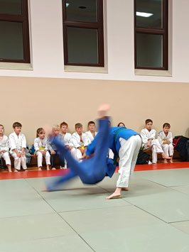 Unser Marc hatte leider nur einen Kampfgegner. Das war dann auch noch der Landesmeister aus Crimmitschau. Er hat stark gekämpft und kurz vor Schluss auf Uki-Goshi Ippon verloren.