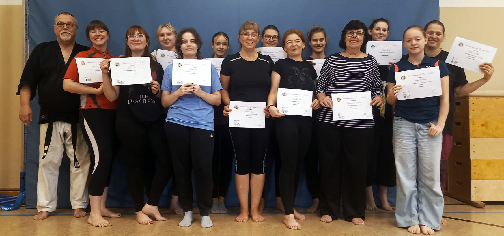Es ist geschafft!Zwanzig Stunden haben die Frauen beim diesjährigen Selbstverteidigungslehrgang absolviert. Eine nicht leichte Aufgabe stand vor jeder Teilnehmerin am Anfang der